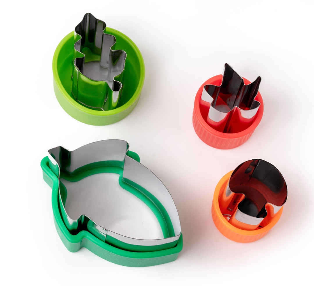 4 darab falevél és makk formájú kiszúró forma, amikkel életre kel az uzsonna :) Tökéletes választás gyümölcsökhöz, zöldségekhez, kekszekhez, aprósüteményhez is.