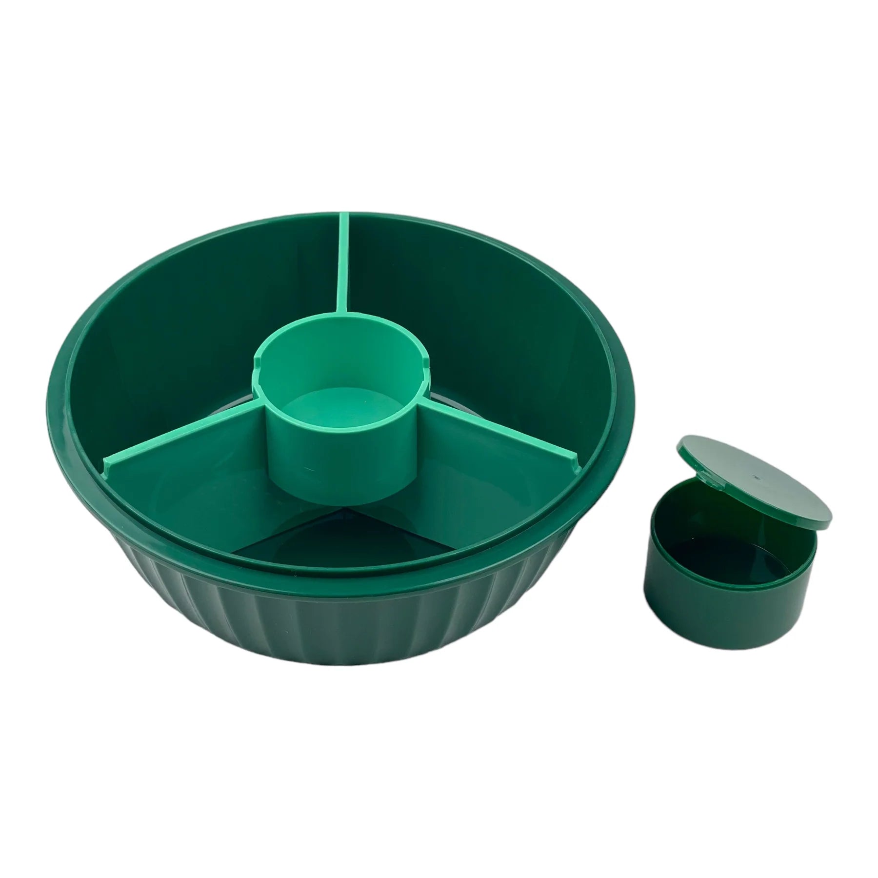 Salátás doboz (poké bowl) 3 nagy rekesszel, egy középső kis kerek rekesszel és egy beleillő kis tégellyel, önteteknek vagy szószoknak. A kis tégely és az elválasztó elem kivehető a dobozból. A salátás doboz teteje csöpögésmentesen zár, három csat rögzíti szorosan a tálhoz. A szilikon gyűrű kivehető a könnyebb tisztítás érdekében.